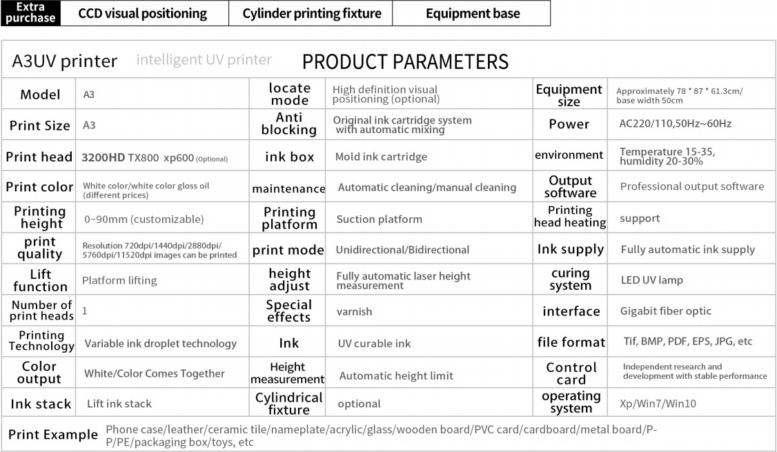 Ten drukarka osiąga wysokiej rozdzielczości grafikę na papierze, odpowiednia do książek artystycznych, pudełek pakunkowych, okładek książek itp., z szybkim utwardzaniem farby, które nie przenika i zapobiega deformacji papieru. Podczas drukowania na skórze, farba UV ma silną przyczepność, odporność na zarysowania i zginanie, co czyni ją odpowiednią do produktów ze skóry naturalnej lub skórzanek syntetycznych, takich jak buty, torby i meble. Efekt druku może przedstawiać wykończenie matowe, błyszczące lub tekstury 3D, co podnosi jakość produktu, oraz wspiera personalizowaną produkcję małych partii bez skomplikowanego przetwarzania końcowego.
